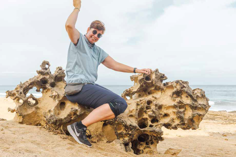 Ein besonders markanter Felsen erregt unsere Aufmerksamkeit: ein steinerner Koloss, der an ein Pferd erinnert. Natürlich können wir der Versuchung nicht widerstehen, dieses „Felsenpferd“ zu besteigen – ein Moment kindlicher Freude mitten in dieser rauen Wildnis. Unsere Kamera bleibt keine Sekunde still. Langzeitbelichtungen fangen die Bewegungen der Brandung ein, während Makroaufnahmen die winzigen Wunder dieser Landschaft zeigen. In den natürlichen Pools entdecken wir geschäftige kleine Krabben, die uns mit ihren scharfen Blicken fast spöttisch zu mustern scheinen.