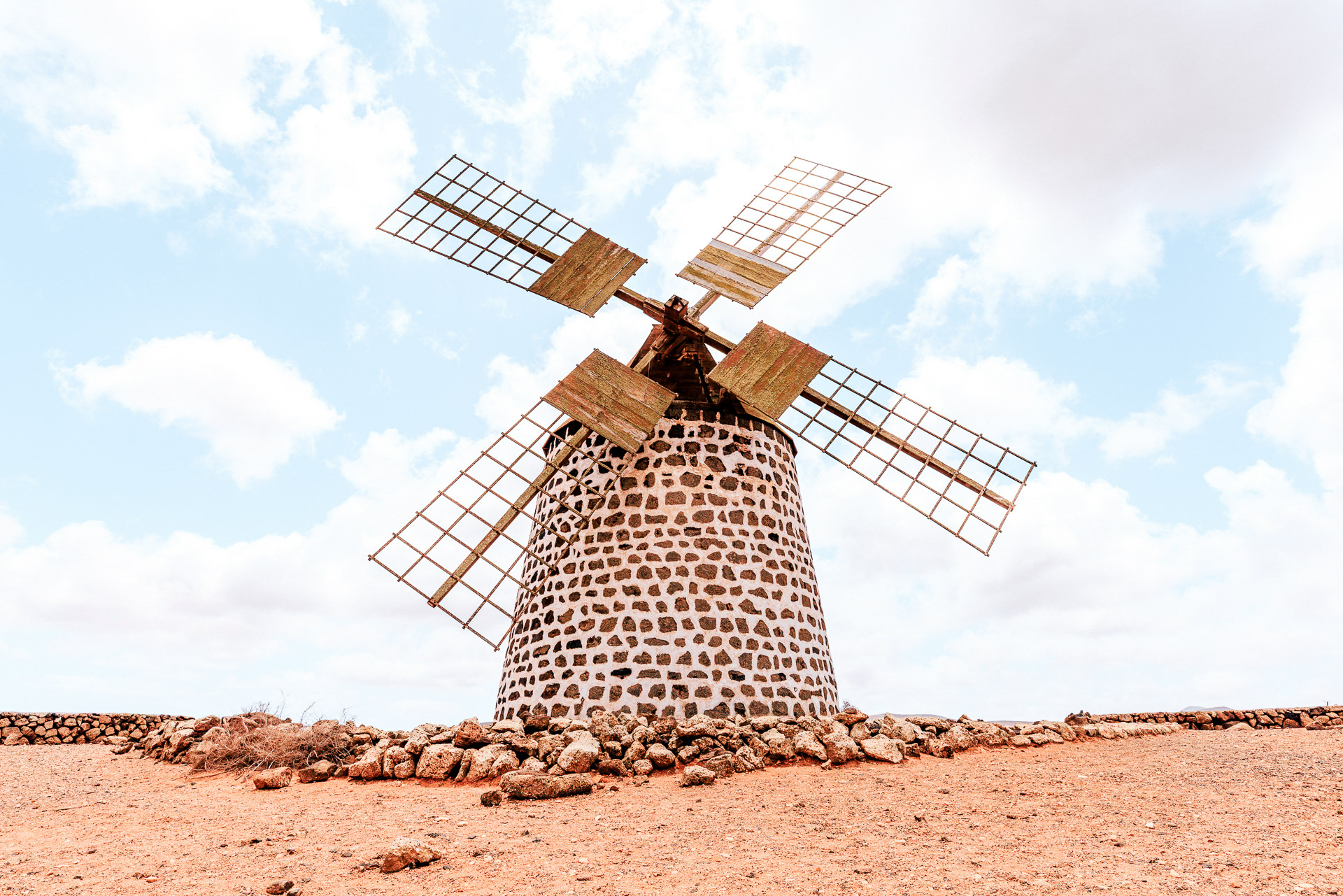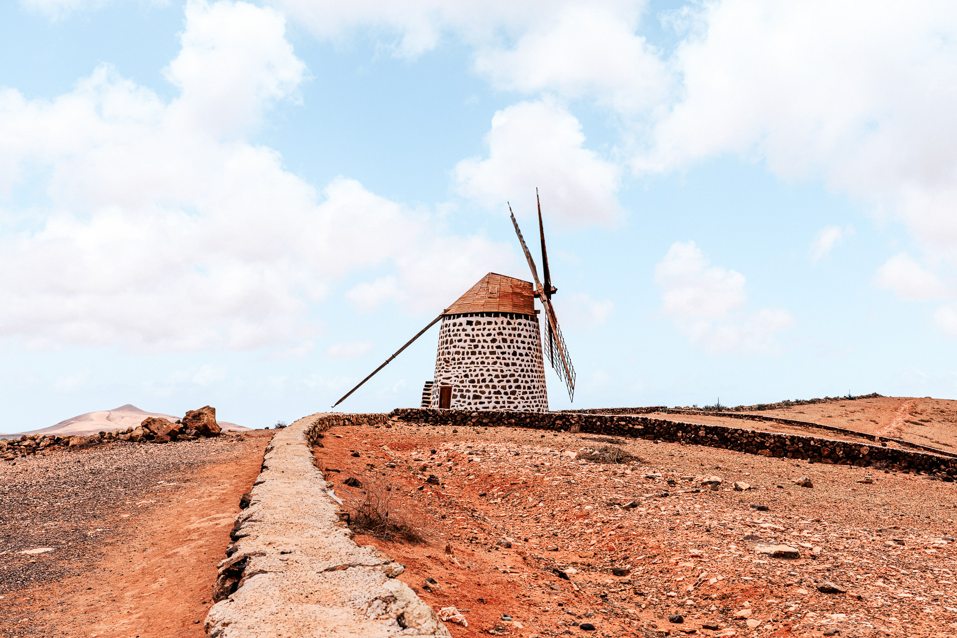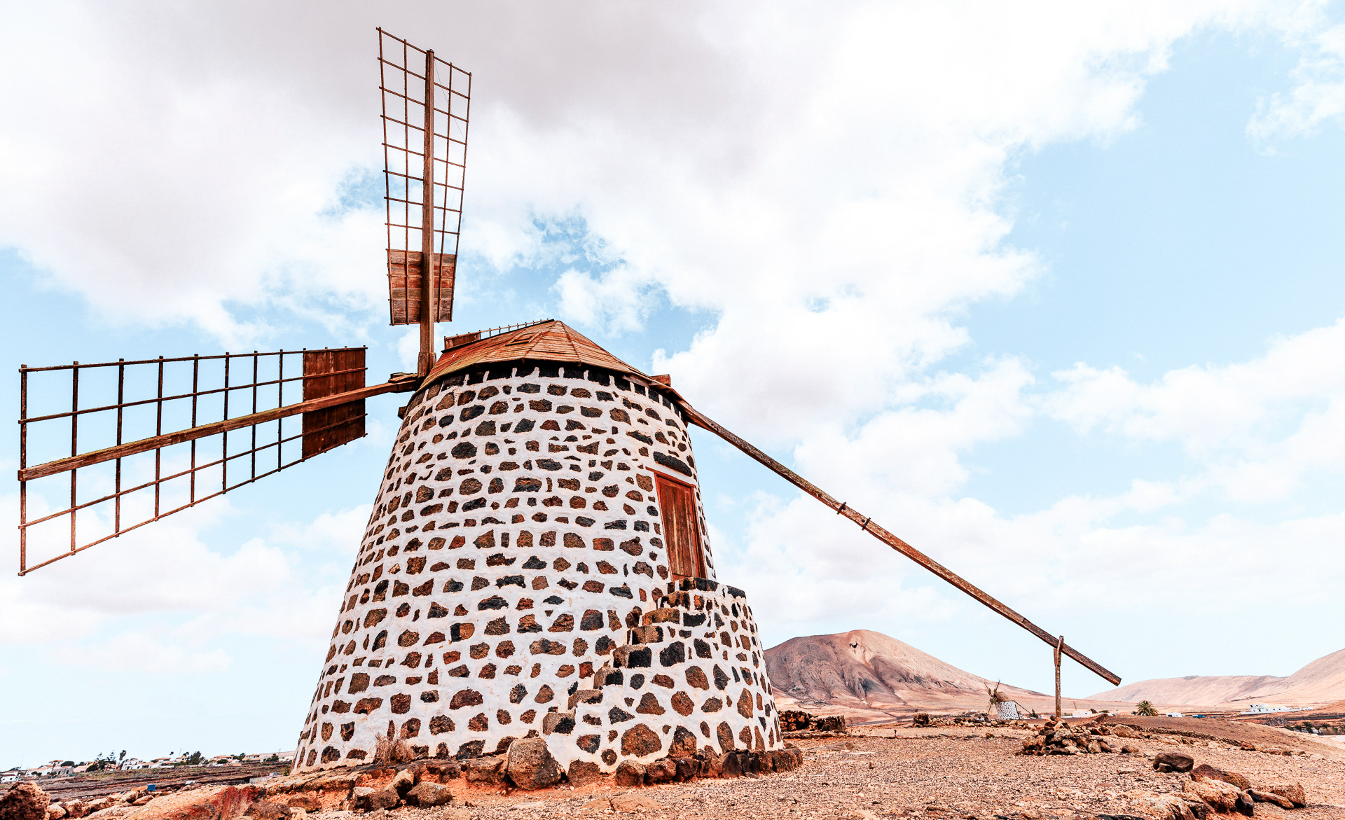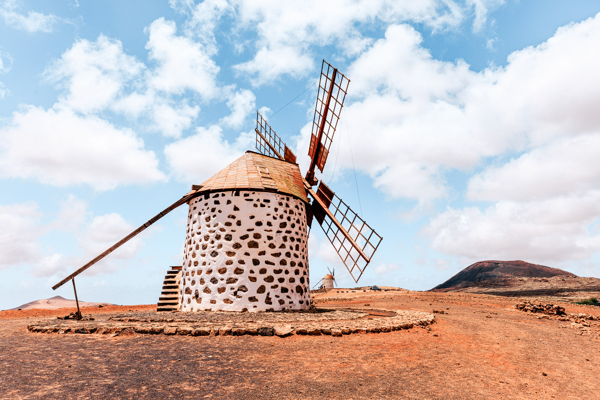 Hoch über dem Dorf Villaverde stehen sie Seite an Seite: Zwei stolze Windmühlen, die einst das Überleben sicherten. Heute drehen sich ihre Flügel als stille Mahnung daran, wie eng Natur, Handwerk und Alltag auf Fuerteventura verbunden waren – und immer noch sind.