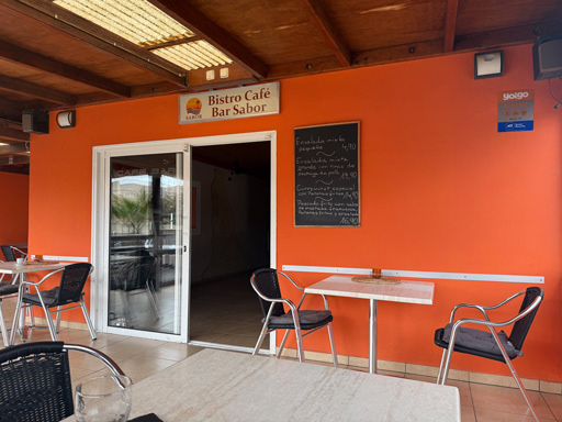 Después de la aventura solo queríamos una buena parada. Y así llegamos al nuevo Bar-Café Sabor, antes Plan B. Nos recibió un amable alemán de Hamburgo – la persona, no el bocadillo – que desde hace dos meses cumple allí su sueño. Cocinero, hotelero, artista. Y se nota.