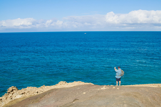 El panorama era enorme. Podíamos ver desde el sur de la costa oeste hasta Ajuy en el norte. Por un momento parecía que respirábamos toda la isla. Ojos cerrados, sensores emocionales encendidos. Un bálsamo para el alma. Y un descanso para los pies.