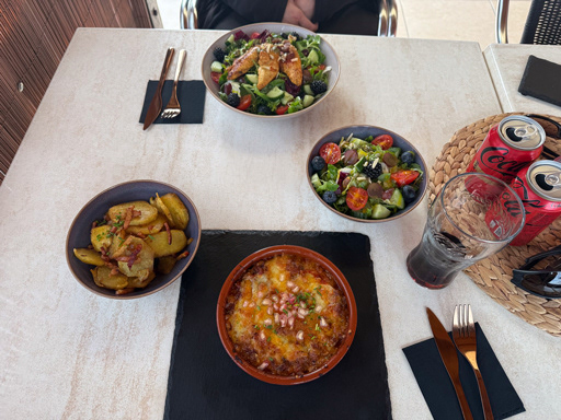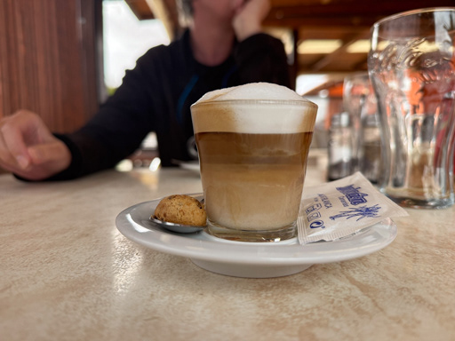 Nach diesem kleinen Abenteuer wollten wir nur noch eines: eine gute Einkehr. Und so landeten wir im neuen Bar-Café Sabor, ehemals Plan B. Dort empfing uns ein freundlicher Hamburger – der Mensch, nicht das Gericht – der seit zwei Monaten hier seinen Traum verwirklicht. Koch, Hotelier, Künstler. Und alles, was er serviert, schmeckt wie eine Mischung aus Leidenschaft und Lebensfreude. Essen, Getränke, Nachtisch – alles auf einem Sterneniveau, das man eher in einer Großstadt erwarten würde, der Preis aber Fuerteventura-tauglich bleibt. Ein Ort, der Kraft gibt, Lust auf Touren macht und zeigt, dass Fuerteventura voller kleiner Wunder steckt.