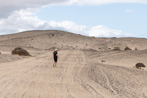Nur zwei Radfahrer sahen wir – schiebend. Durch tiefen Sand. Wer rechnet auch damit, auf einer Vulkaninsel plötzlich Muschelstrand unter den Reifen zu haben? Fuerteventura hat eben Humor.